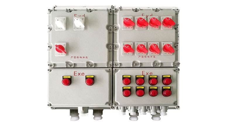 1、鑄鋁合金防爆箱:外殼采用鑄鋁合金一次性壓鑄成型,表面噴塑。主腔采用隔爆型結(jié)構(gòu),接線腔增安型結(jié)構(gòu)。內(nèi)可選配裝斷路器、交流接觸器、熱繼電器、Ex防爆控制按鈕、Ex防爆信號燈等。配電箱采用模塊化設(shè)計,各種回路可以自由組合,電器元件選型可由用戶而定,其結(jié)構(gòu)緊湊、外形美觀。進(jìn)出線采用鋼管或電纜布線均可,進(jìn)出線口方向可由用戶要求而定。
