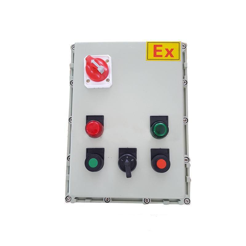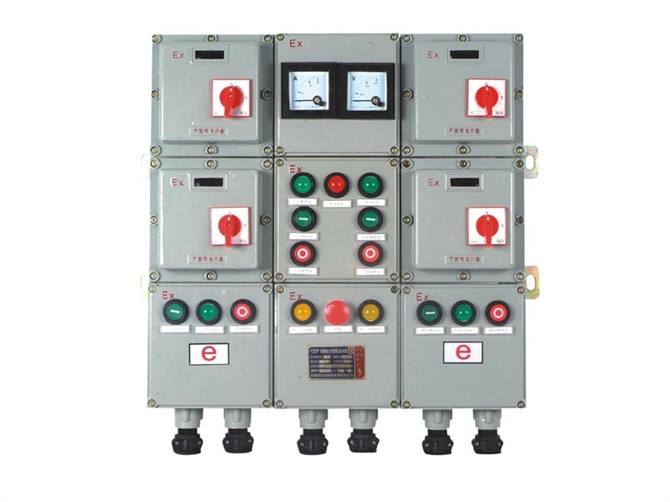 2、鋼板焊接防爆箱:外殼采用鋼板焊接成型,箱體尺寸按用戶要求定做焊接,表面高壓靜電噴塑。分主腔和接線腔,均采用隔爆型結(jié)構(gòu),內(nèi)可選裝高分?jǐn)鄶嗦菲鳌⒔涣鹘佑|器、熱繼電器、控制按鈕、信號燈等元件,通過操作殼蓋上的手柄實現(xiàn)分合,動作性能可靠,并設(shè)有分合顯示信號燈。進(jìn)出線采用鋼管或電纜布線均可,進(jìn)出線口方向及內(nèi)部元件可由用戶要求而定。其它材料及外形均可根據(jù)用戶要求訂制。