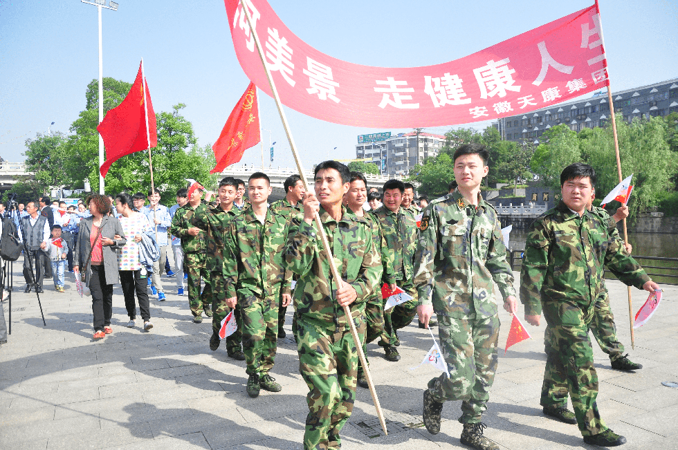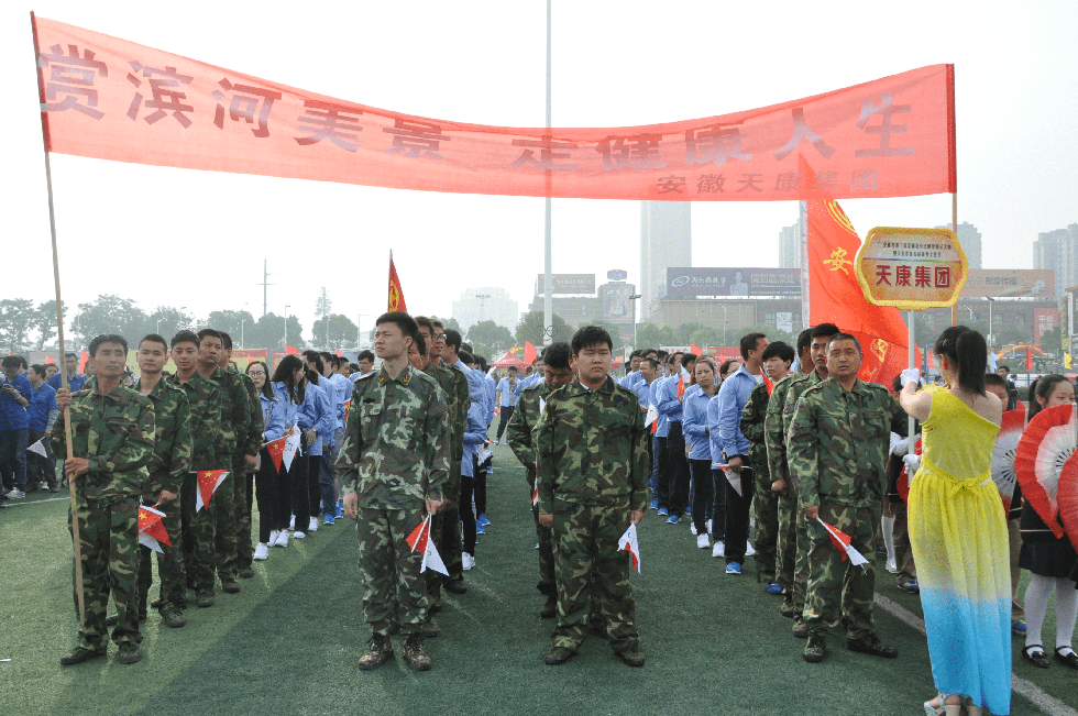 展示活動結束后,還舉行了“賞濱河美景、走健康人生”萬人健身走活動。安徽天康集團武裝部退役軍人及一線職工共80余人參加了健身走活動。