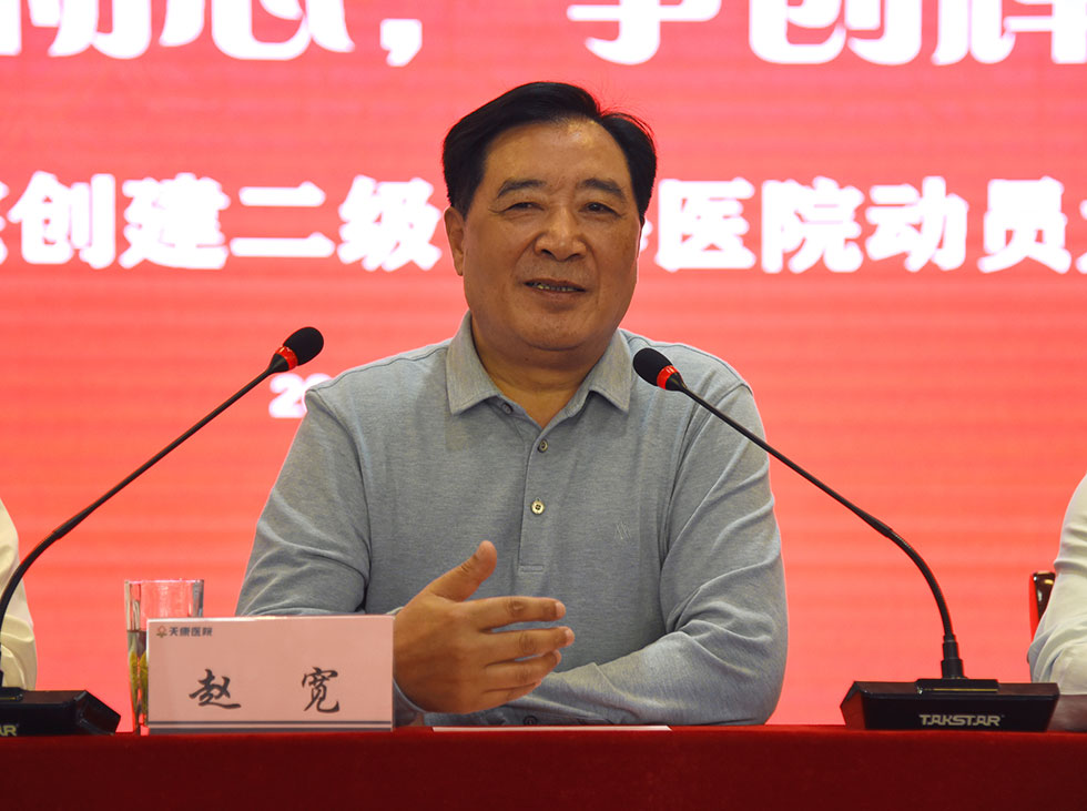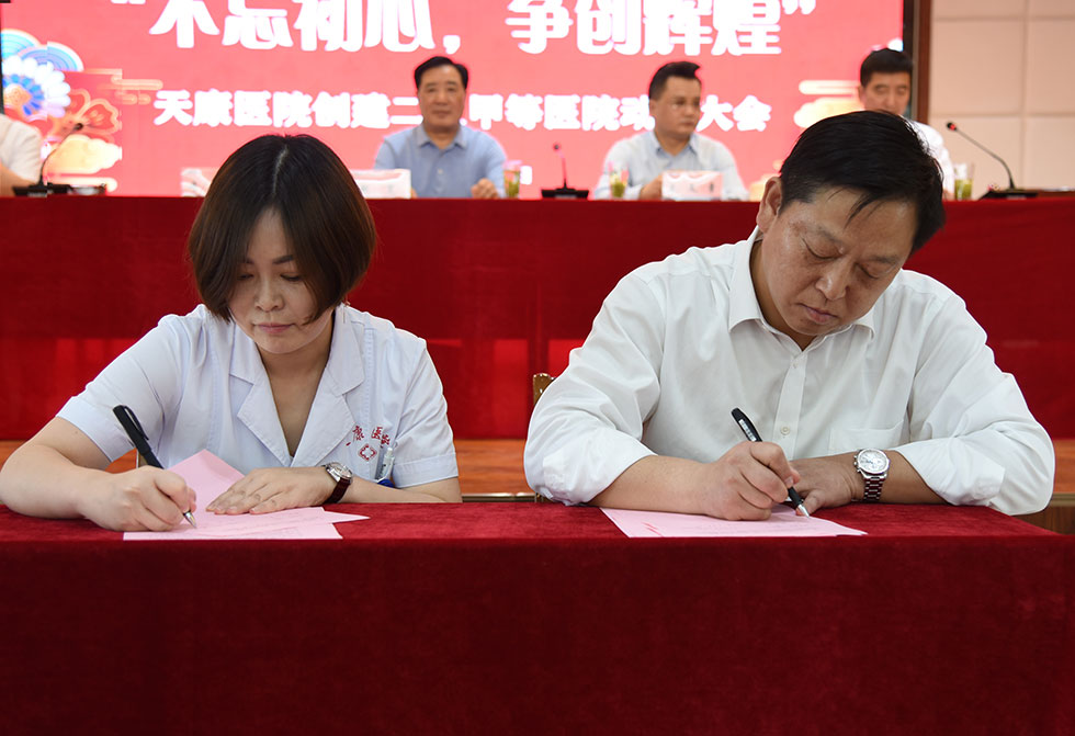 天康醫院常務副院長王文超在會上宣讀了《創建二級甲等醫院實施方案》;副院長趙瑞斌在會上宣讀了二甲創建倡議書。