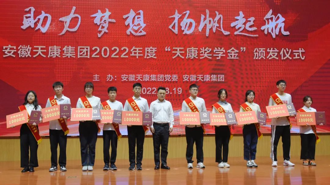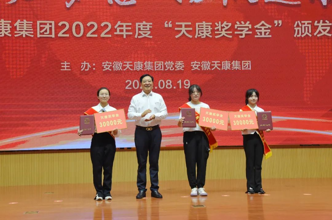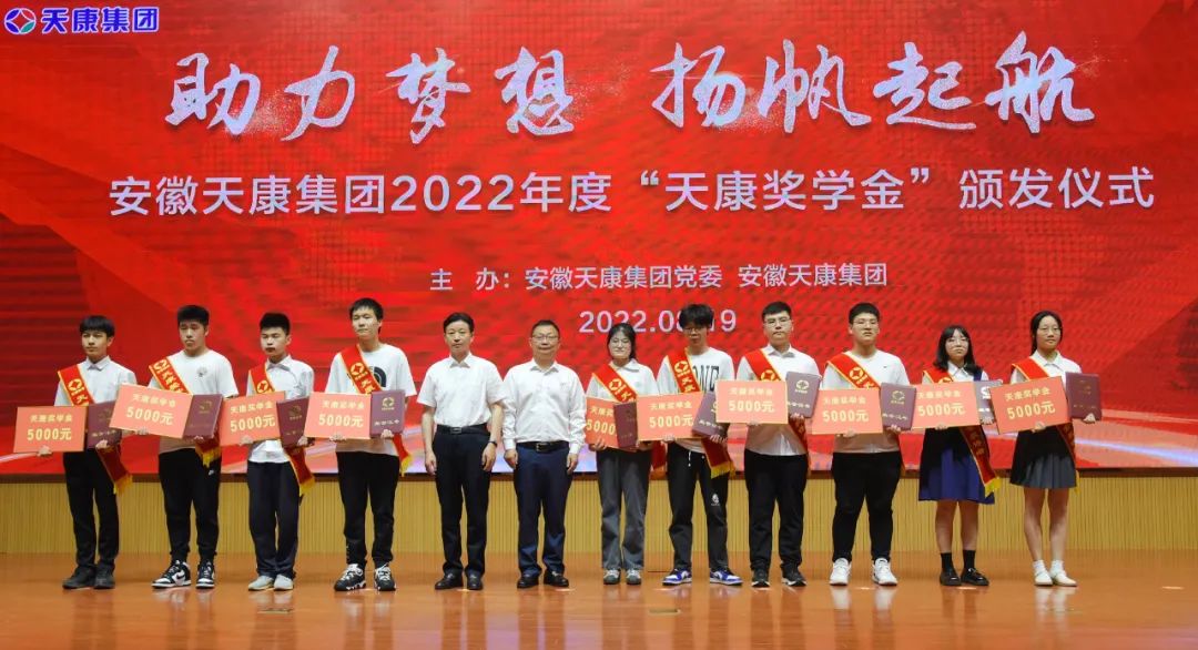 8月19日上午,由安徽天康集團黨委與安徽天康集團共同主辦,集團關工委、工會、團委聯合承辦的“安徽天康集團2022年度‘天康獎學金’頒發儀式”在集團會議中心舉行。共青團天長市委副書記馬翔,集團黨委書記、董事長趙寬,黨委副書記、總經理毛文章,黨委副書記、副總經理趙建兵應邀出席儀式。集團黨委班子成員、集團領導班子成員、銷售副總、銷售經理代表、職能部門負責人、獲得“天康獎學金”學生及家長代表等參加了儀式。