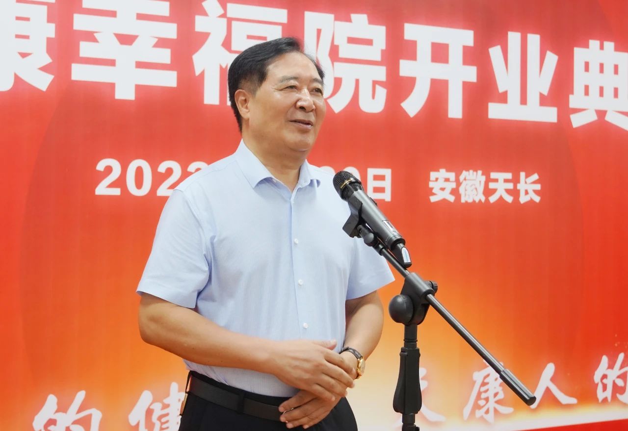 天長市民政局副局長華東在講話中首先代表市民政局對天康幸福院的開業運營表示祝賀。同時指出,安徽天康集團作為天長市龍頭企業,在自身不斷發展壯大的同時,始終不忘勇擔社會責任,積極踐行公益事業,主動回報社會。利用現有優越的資源,打造了一個“醫養結合,健康養老”的養老新居所,彰顯了大企業、大擔當、大作為,積極地推動天長市養老事業的發展,造福了一方百姓。