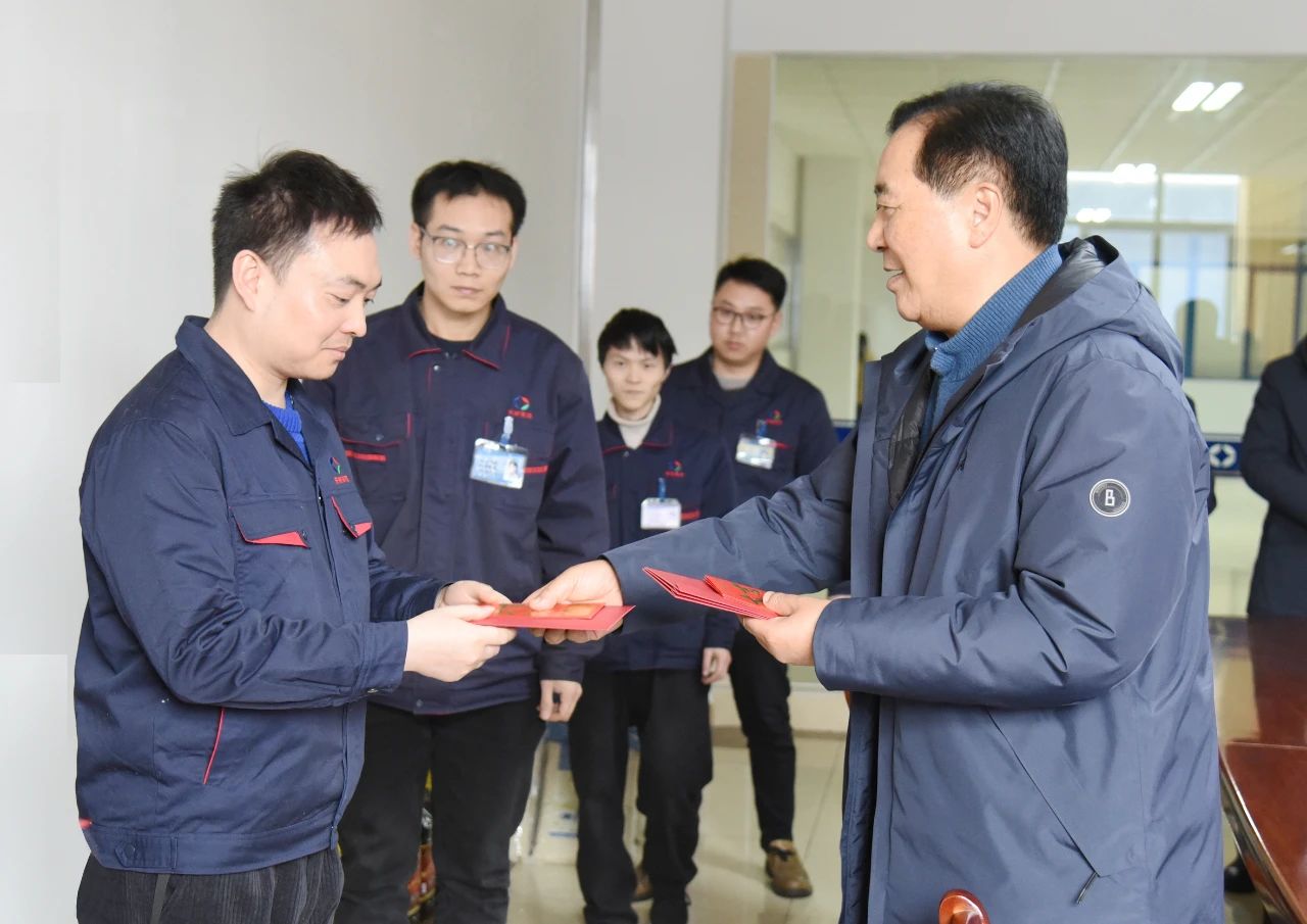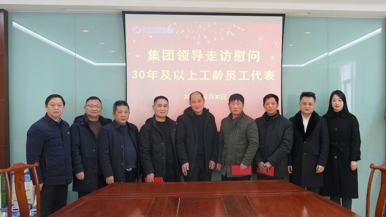 2024年新春佳節到來之際,1月30日,安徽天康集團黨委書記、董事長趙寬,黨委副書記、總經理、國家企業技術中心主任毛文章深入生產一線和結對共建村走訪慰問了集團科技工作者、在崗30年員工、退役軍人員工代表、困難職工代表及共建村困難居民等,為他們發放慰問金、慰問品,送上集團的關懷和新春的祝福。