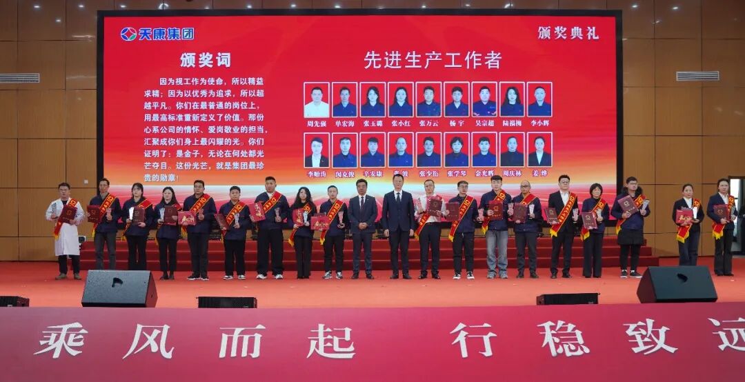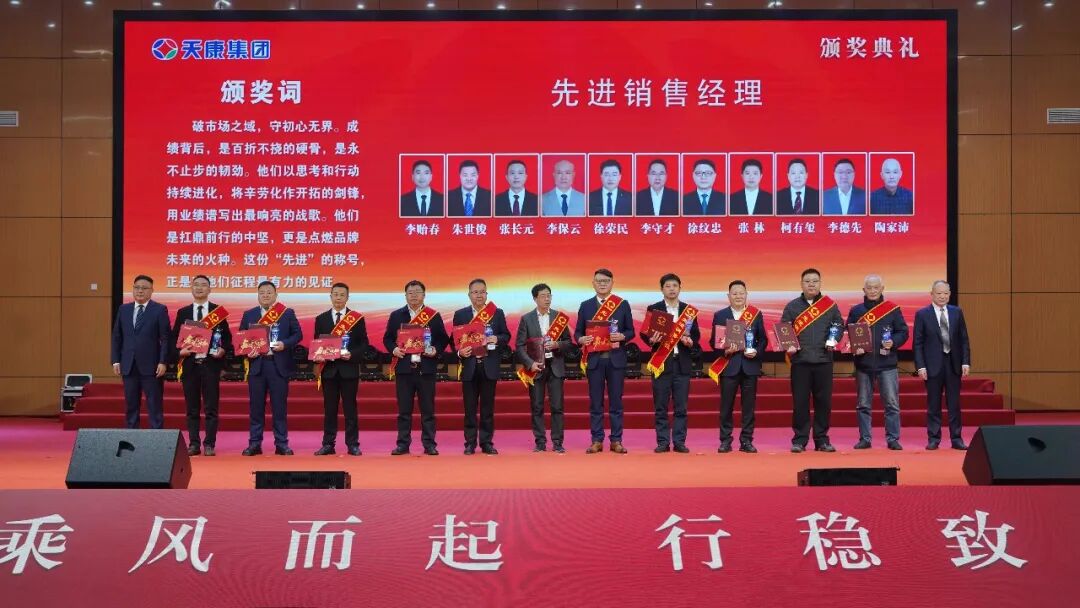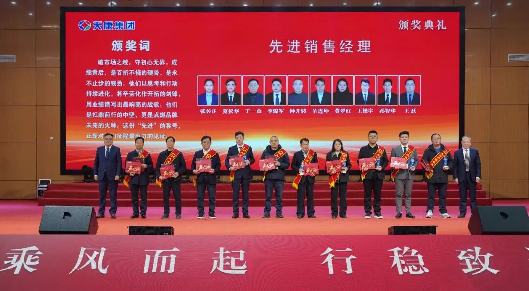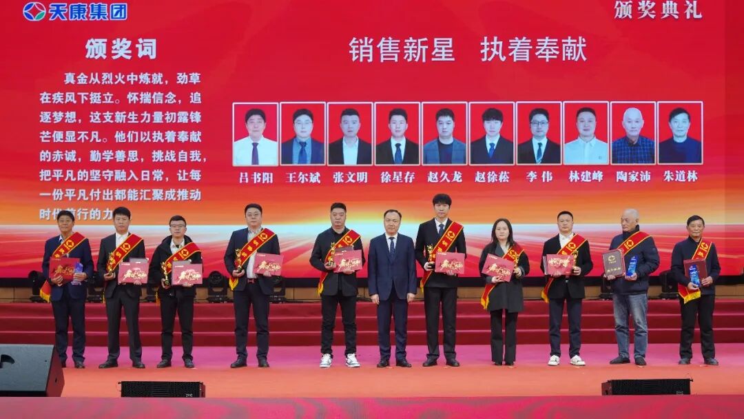 會議同時為銷售冠、亞、季軍,億元特別貢獻獎、優秀銷售經理、先進銷售經理、銷售新星、行業銷售精英、主營單項銷售精英、銷售業績重大突破獎、大型客戶好評獎、國外市場拓展先進獎、新產品引進貢獻獎、執著奉獻獎、先進集體、天康工匠、先進生產工作者等頒獎。