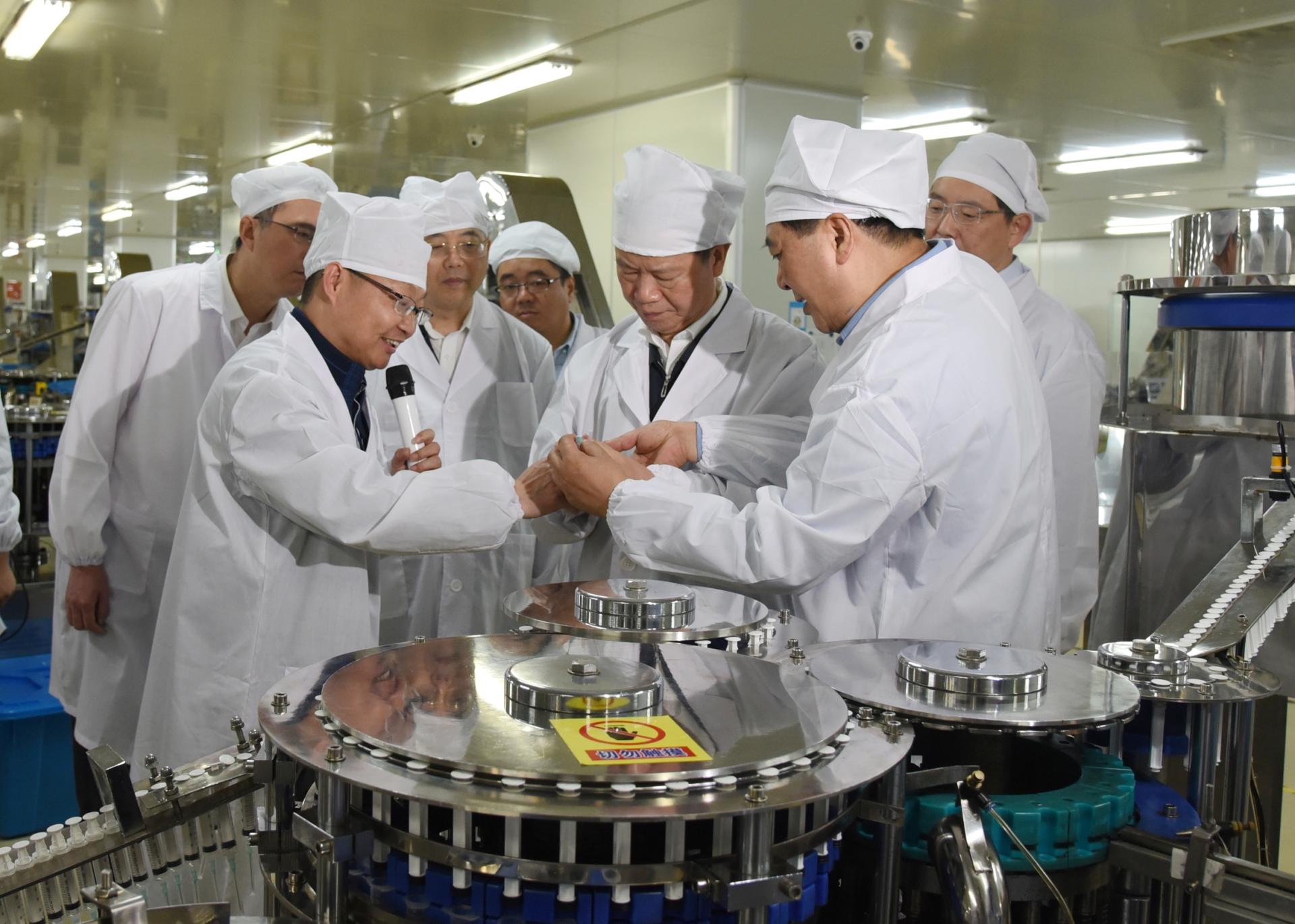 在儀器儀表生產線,當了解到安徽天康集團的所生產的天儀牌熱工儀表在全國處于行業領先地位時,張昌爾表示贊賞。在醫療科技生產現場,張昌爾認真察看了醫療器械自動化生產現場,并詳細了解產品出口情況。