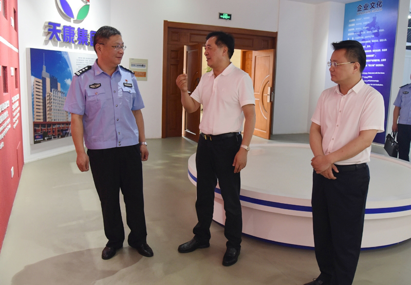 調研座談中,蘇駿副市長對安徽天康集團四十多年來的發展所取得的成績表示高度肯定,對安徽天康集團高度的社會責任感和無私的奉獻境界表示高度贊揚。他指出,市公安局將深入貫徹落實習近平總書記關于支持民營經濟發展的重要講話精神,充分履行公安機關支持民營企業健康發展的重要職責。落實好《天長市公安局服務民營企業健康發展十四條措施》,開展好警企聯系工作,做好服務保障,切實為民營企業發展壯大創造良好的法治環境和營商環境,為民營企業發展保駕護航。