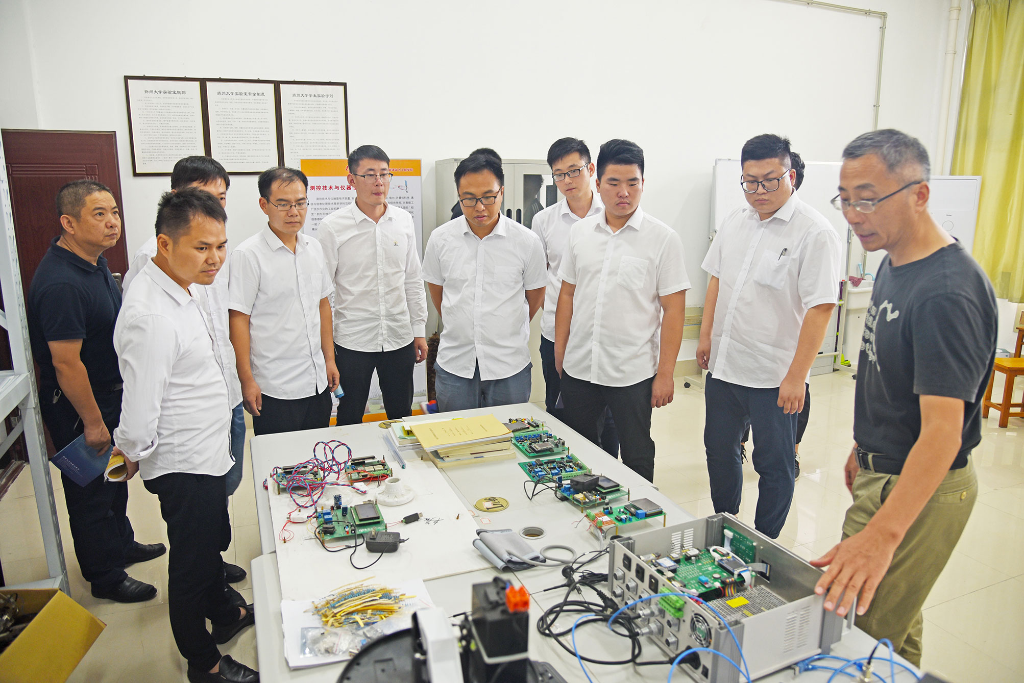 會(huì)上,天康集團(tuán)“天康百人培育計(jì)劃”研學(xué)團(tuán)成員與揚(yáng)州大學(xué)李生權(quán)博士、史旺旺博士、王千龍博士就機(jī)電能量系統(tǒng)、充電樁、電力電子等主題進(jìn)行交流和研討,共同參觀了揚(yáng)州大學(xué)電氣與能源動(dòng)力工程學(xué)院電氣工程研究所、測(cè)控技術(shù)與智能系統(tǒng)研究所等專業(yè)實(shí)驗(yàn)室以及揚(yáng)州大學(xué)科技園。研學(xué)團(tuán)成員們紛紛表示受益匪淺,就自己感興趣的問題與校方進(jìn)行深入溝通,并表示在今后的工作中要積極關(guān)注學(xué)術(shù)前沿,將先進(jìn)的學(xué)術(shù)理論與生產(chǎn)實(shí)踐有效結(jié)合,創(chuàng)新創(chuàng)研,不斷推進(jìn)企業(yè)高速發(fā)展。