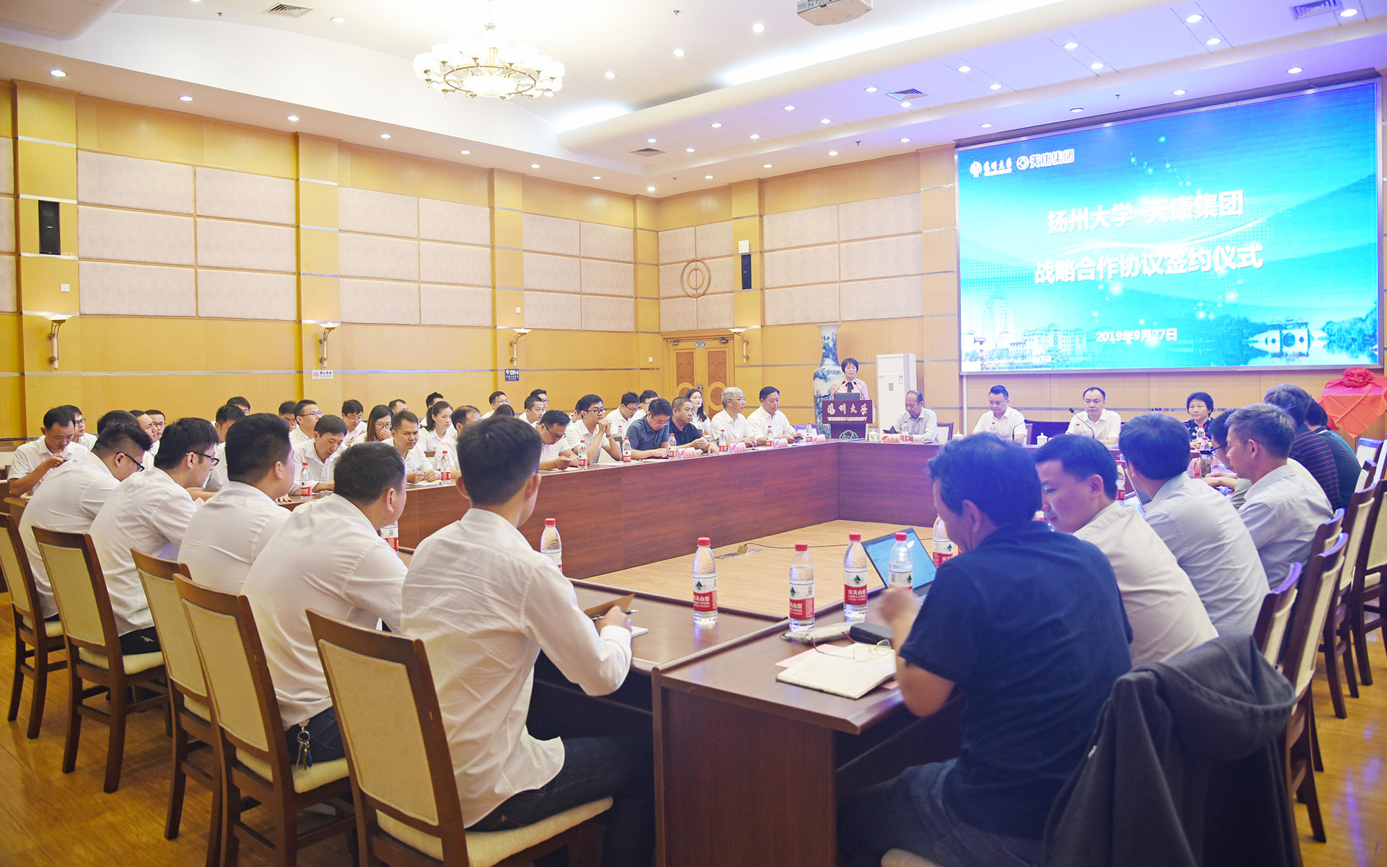 毛文章總經(jīng)理在儀式上致辭。他提出,揚(yáng)州大學(xué)底蘊(yùn)深厚,是江蘇省人民政府和教育部共建的高水平、綜合性大學(xué),揚(yáng)州大學(xué)電氣與能源動(dòng)力工程學(xué)院學(xué)科優(yōu)勢(shì)突出,師資力量雄厚,建有諸多一流的科研實(shí)驗(yàn)平臺(tái)和專業(yè)的教學(xué)實(shí)驗(yàn)室。此次天康集團(tuán)與揚(yáng)州大學(xué)合作,將使校、企資源更好地實(shí)現(xiàn)共享互補(bǔ),高效整合,進(jìn)一步適應(yīng)社會(huì)和市場(chǎng)發(fā)展需求,有效促進(jìn)科技和經(jīng)濟(jì)的發(fā)展。