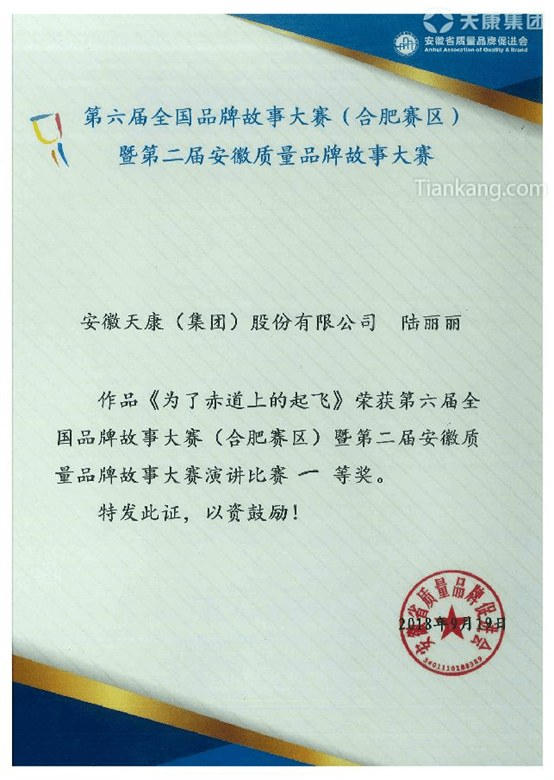 安徽天康集團一直以來高度重視質量和品牌文化建設,著力打造天康特色品牌服務體系,在制定品牌發展戰略規劃和實施品牌推廣發展戰略中取得了一定的成績。本次參賽得到了集團領導的高度重視,通過黨委辦、集團辦、生產科研部、銷售部、文宣部等部門的通力合作及陸麗麗個人的努力,在本次比賽中取得如此優異的成績,這既是對她本人努力的肯定,也是對安徽天康集團的肯定。提升了天康品牌知名度,更好地展示了天康的企業形象。