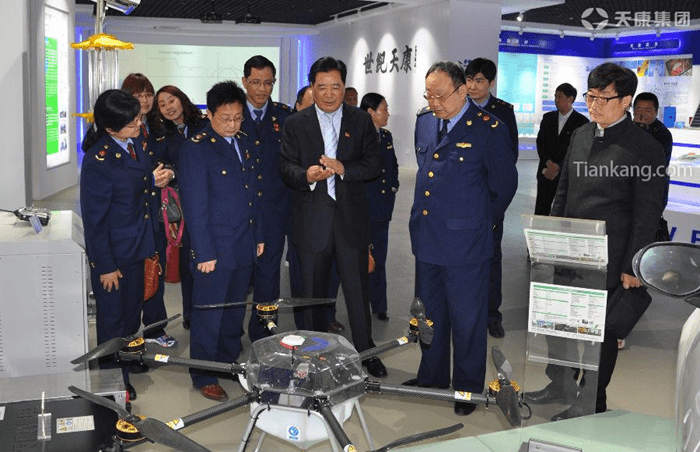 儀式結束后,滁州市工商局黨組書記、局長左寧一行在集團董事長趙寬的陪同下參觀天康集團展示廳。