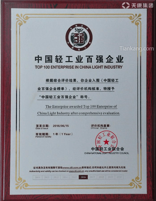 近日,中國輕工業聯合會在北京召開了“第五屆中國輕工企業家高峰論壇暨百強企業頒獎盛典”。本次大會向社會各界發布了“2015年度中國輕工業百強企業”榮譽榜單。安徽天康集團憑借多年來良好的發展態勢及不斷升級的企業品牌力榮登百強榜。