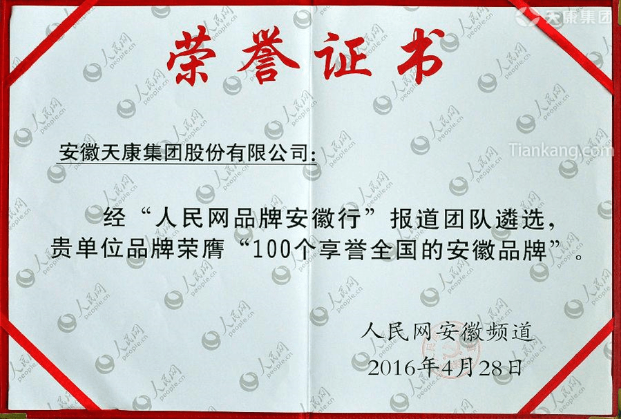 安徽天康集團榮膺“享譽中國的100個安徽品牌”