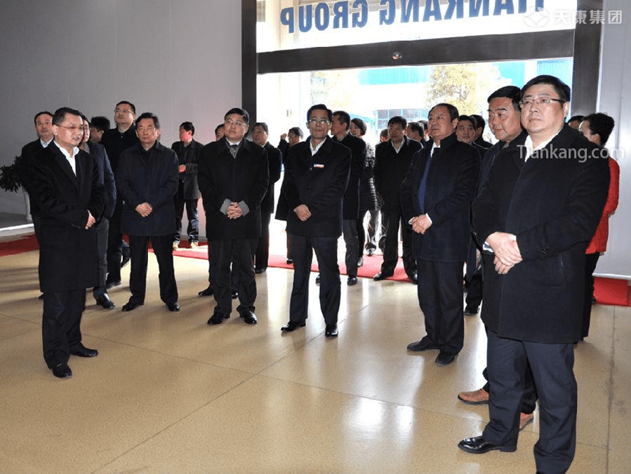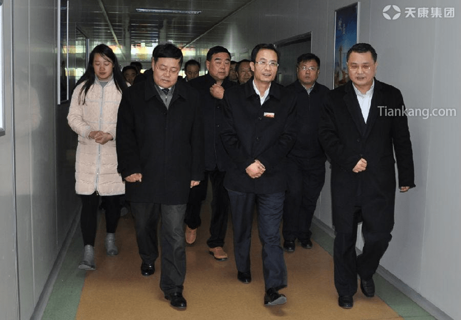 金維加(前排左三)、市長(zhǎng)朱大綱(右一),天康集團(tuán)總經(jīng)理毛文章(左一)等陪同考察。