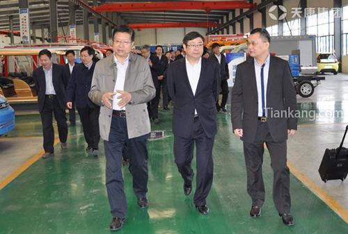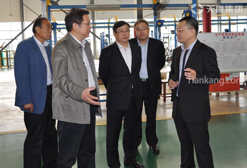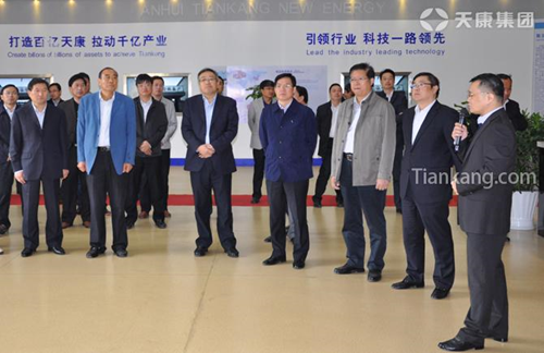 朱大綱(前排中),天康集團總經理毛文章(前排右一)的陪同下參觀天康集團