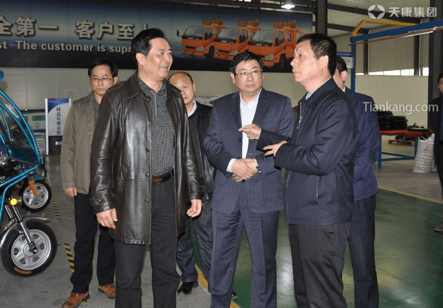 錢局長一行在天康特種車輛裝備生產線了解天康純電動車的相關情況。