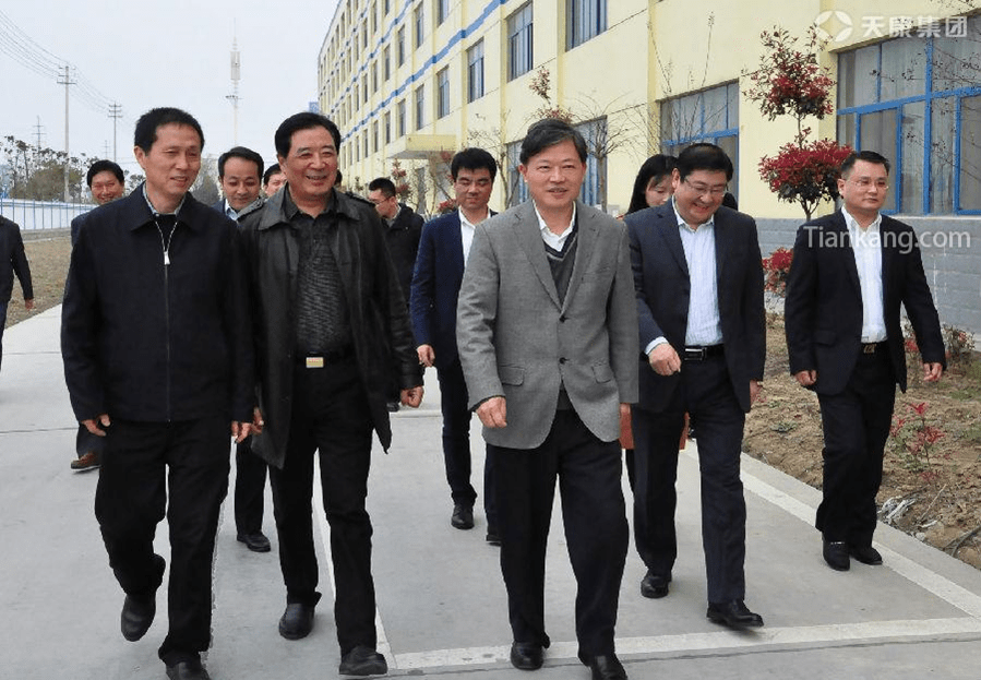 3月30日下午,安徽省統計局局長錢曉康(左一)一行在滁州市委書記李明(中)、天長市委副書記、市長朱大綱(右二)等領導的陪同下蒞臨天康集團調研指導工作。天康集團董事長趙寬(左二)、總經理毛文章(右一)陪同調研并匯報了天康集團整體發展概況。