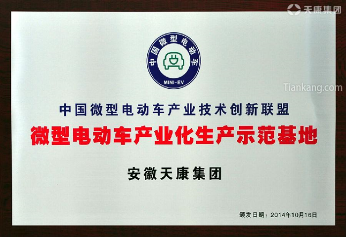 集團榮獲中國微型電動車產業技術創新聯盟 微型電動車產業化生產示范基地