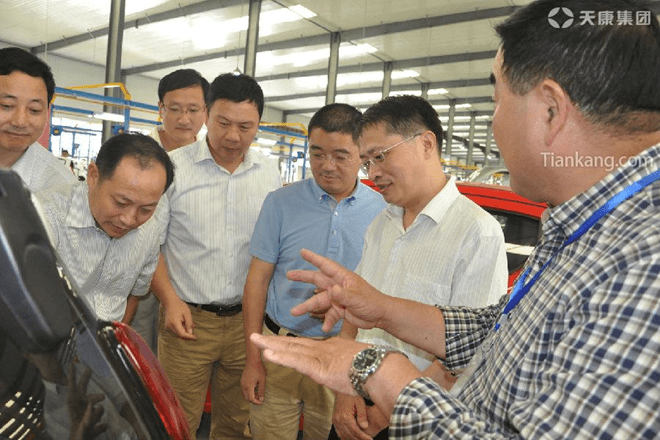 滁州市委常委、副市長郭強(右二)考察天康特種車輛裝備生產線