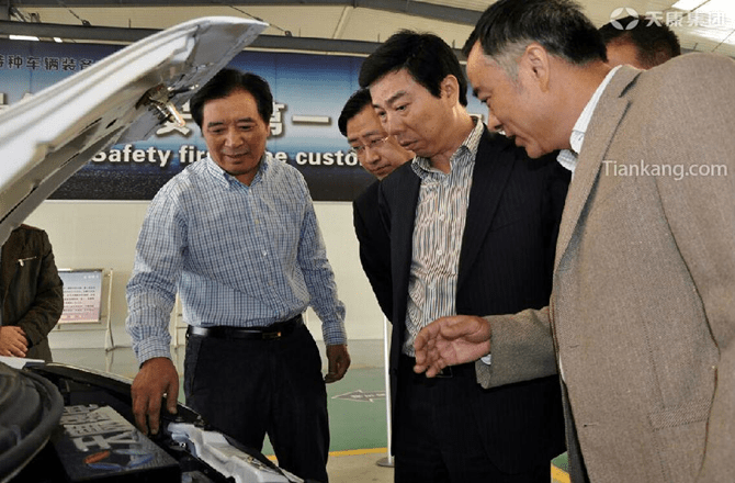 10月24日,中國農業(yè)銀行安徽省分行副行長程國新(右二)考察天康特種車輛裝備生產線